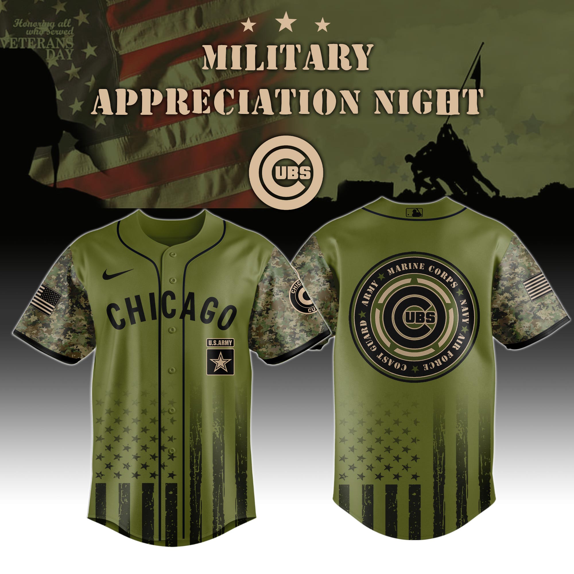 Chicago Cubs x Military Appreciation (Army, Navy, USAF, USMC, USCG) Special Edition Jersey