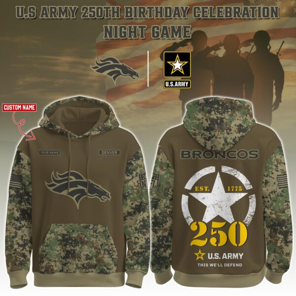 Denver Broncos x 250th Birthday US Army Personalized Custom Unisex Hoodie