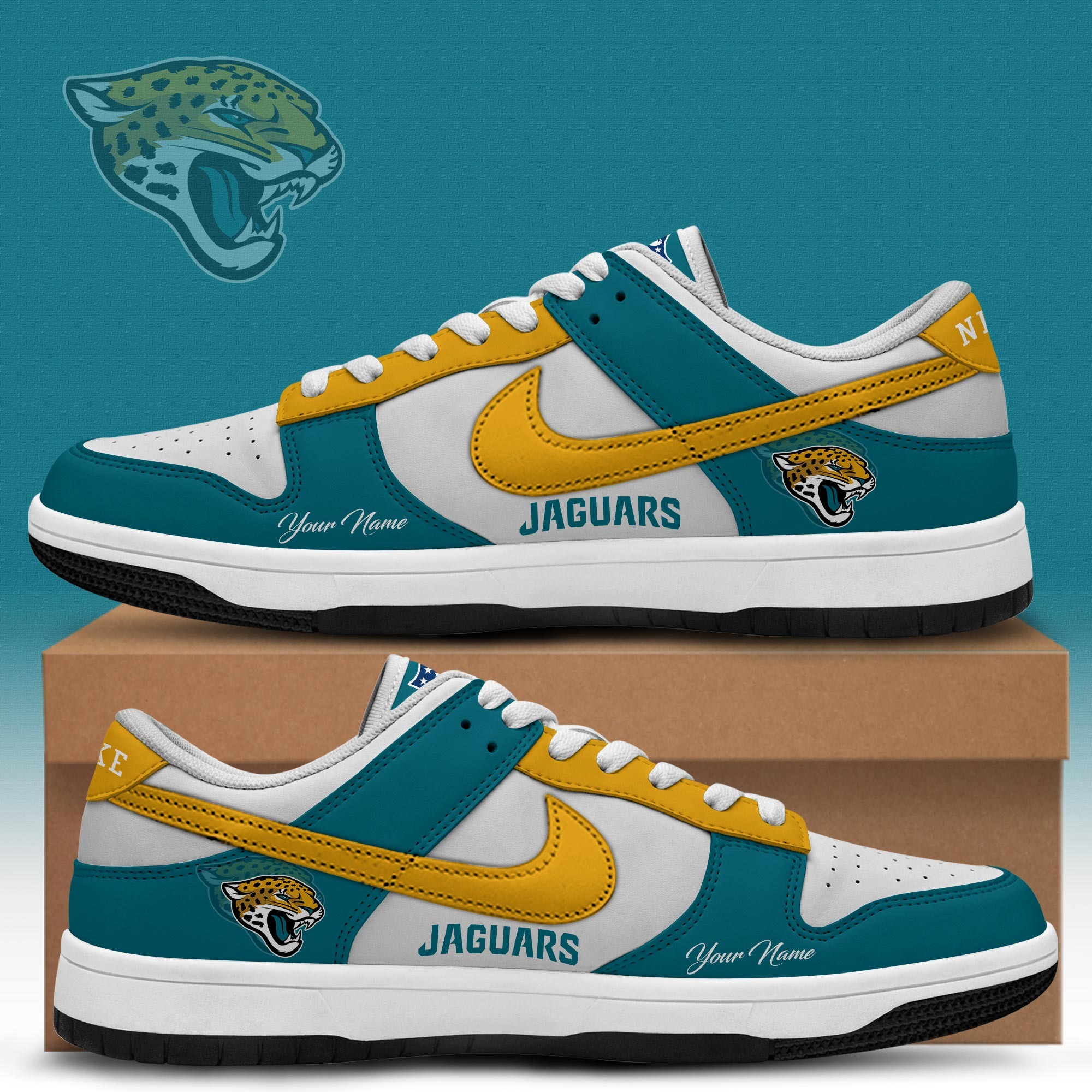 Jacksonville Jaguars x Personalized Dunk Low Shoes Special Edition