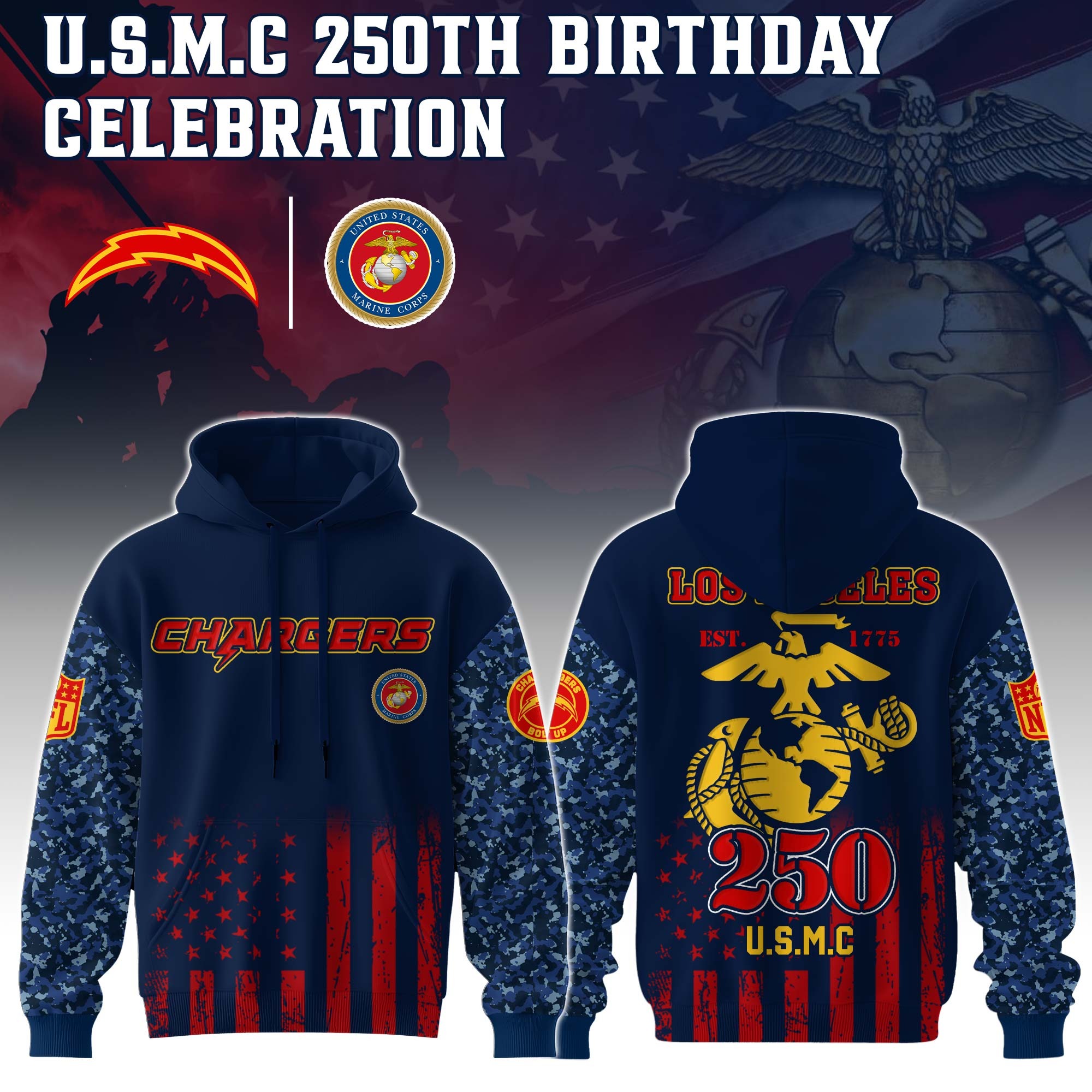 Los Angeles Chargers x 250 Years Anniversary US Marine Corps U.S.M.C Special Edition Unisex Hoodie