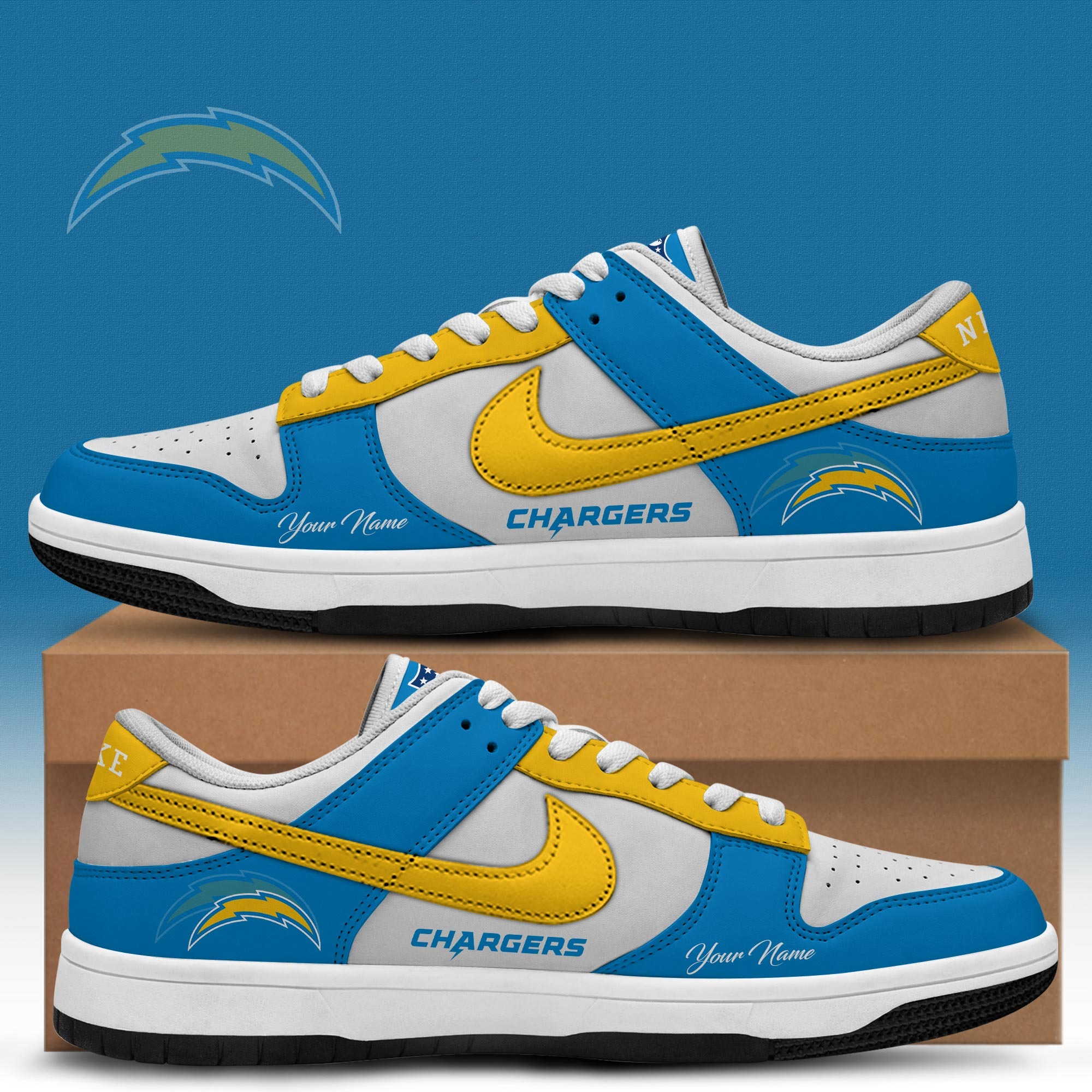 Los Angeles Chargers x Personalized Dunk Low Shoes Special Edition