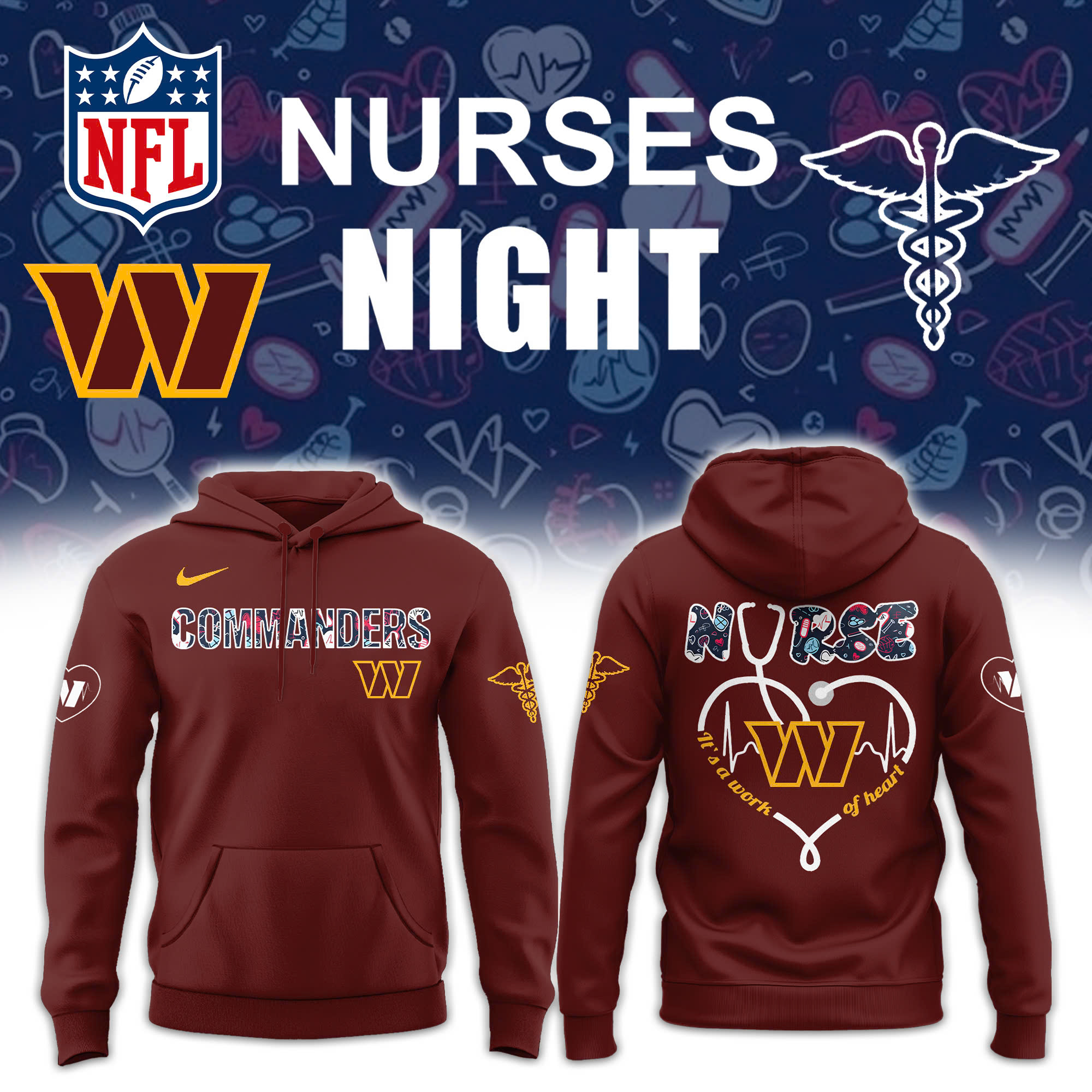Washington Commanders x Nurses Appreciation Unisex Hoodie